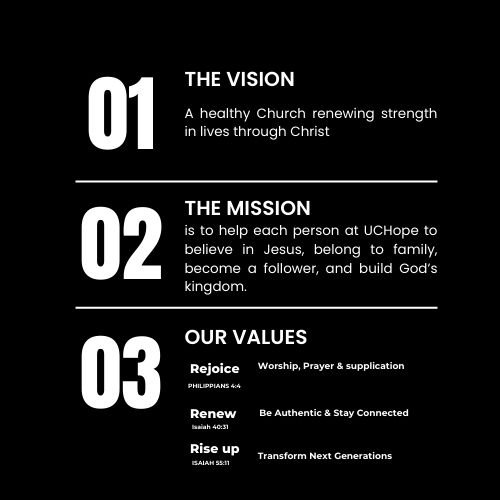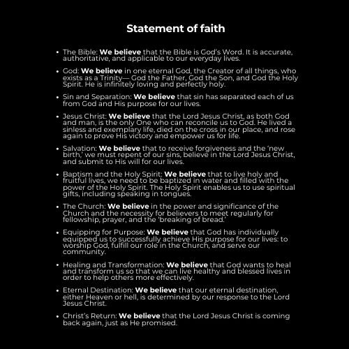 We are here to lift up praises to our Living God, creating a place of hope, healing, and renewal for everyone. Through His grace, we are becoming a family united in Christ, journeying together in His purpose.